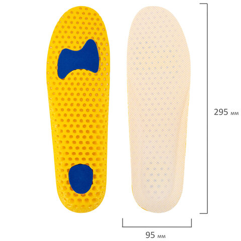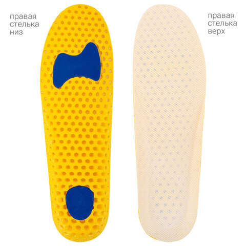 Стельки для обуви с европейским размером EU 40-46, что соответствует российскому размеру RU 39-45. На стельках указан европейский стандарт размера EU, а также нанесены линии выреза. Для удобства на упаковке приведена таблица соответствия размеров RU/EU.