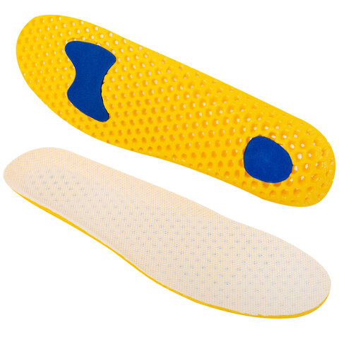 Стельки выполнены из инновационного материала EVA (ЭВА), который имеет уникальную структуру микропор, наполненных воздухом, обладает водонепроницаемостью и высокими теплоизоляционными свойствами. На EVA-материале не образуются бактерии и грибки. Оснащены влаговпитывающим покрытием и перфорацией для циркуляции воздуха, что способствует нормализации микроклимата у вас в обуви. Амортизатор поперечного свода стопы уменьшает нагрузку на передней отдел стопы, а пяточный амортизатор снижает и поглощает ударную нагрузку на пятку.