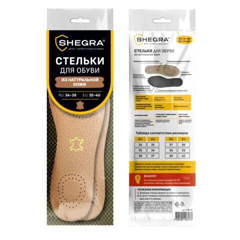 Обрежьте стельку по нанесенному размеру вашей стопы или по размерам стельки, имеющейся у вас в обуви. Вложите стельку тканевой стороной вверх. В целях гигиены рекомендуется менять стельки раз в два месяца. Производитель: SHEGRA Тип товара: стельки для обуви