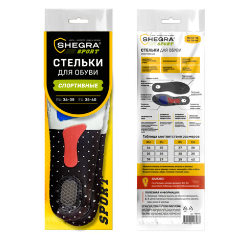 Обрежьте стельку по нанесенному размеру вашей стопы или по размерам стельки, имеющейся у вас в обуви. Вложите стельку тканевой стороной вверх. В целях гигиены рекомендуется менять стельки раз в два месяца. Производитель: SHEGRA Тип товара: стельки для обуви