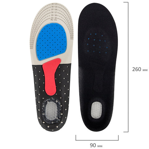 Амортизатор поперечного свода стопы уменьшает нагрузку на передний отдел стопы, а супинатор продольного свода способствует равномерному распределению нагрузки на стопу. Стельки также оснащены пяточным амортизатором, который снижает и поглощает ударную нагрузку на пятку.