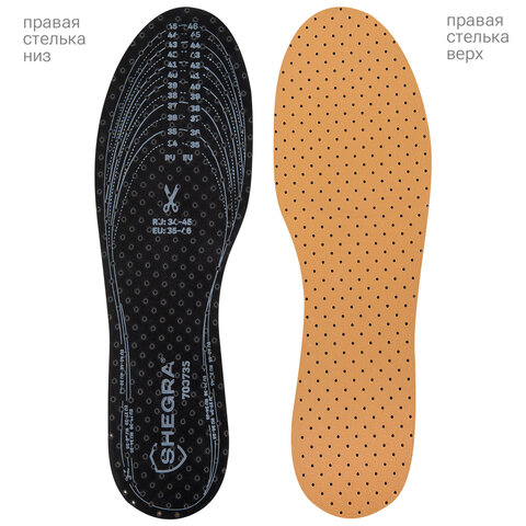 Обрежьте стельку по нанесенному размеру вашей стопы или по размерам стельки, имеющейся у вас в обуви. Вложите стельку тканевой стороной вверх. В целях гигиены рекомендуется менять стельки раз в два месяца Производитель: SHEGRA Тип товара: стельки для обуви
