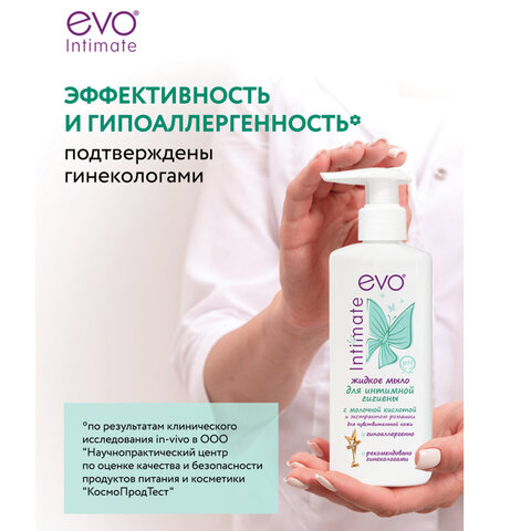 Добровольная клиническая апробация на базе ООО “НПЦ “КосмоПродТест” под контролем специалистов ФГБУ “НИИ МТ” Российской академии медицинских наук. Производитель: EVO intimate Объем: 200 мл