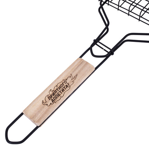 Прутики из прочной стали выдерживают высокие температуры и обеспечивают долгий срок службы. Оксидированное покрытие защищает от коррозии, устойчиво к огню и безопасно для здоровья. Конструкция плотно закрывается и надёжно удерживает продукты при готовке. Деревянная рукоятка не нагревается, удобно ложится в руку и защищает от ожогов. Производитель: ГРИЛЬ И ПИКНИК Тип товара: решетка-гриль